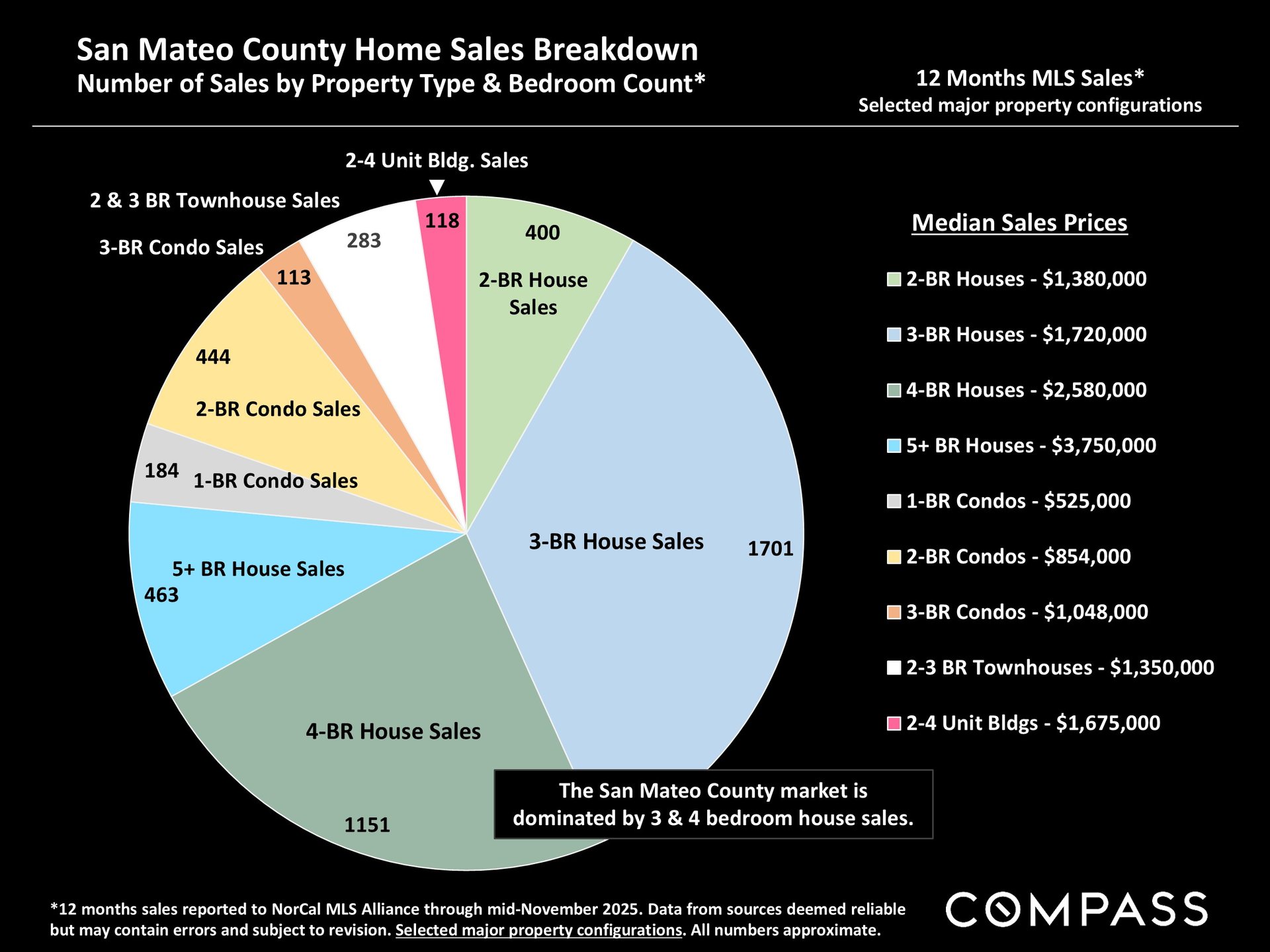 Sales over the past 12 months underscore the defining composition of the San Mateo County market: