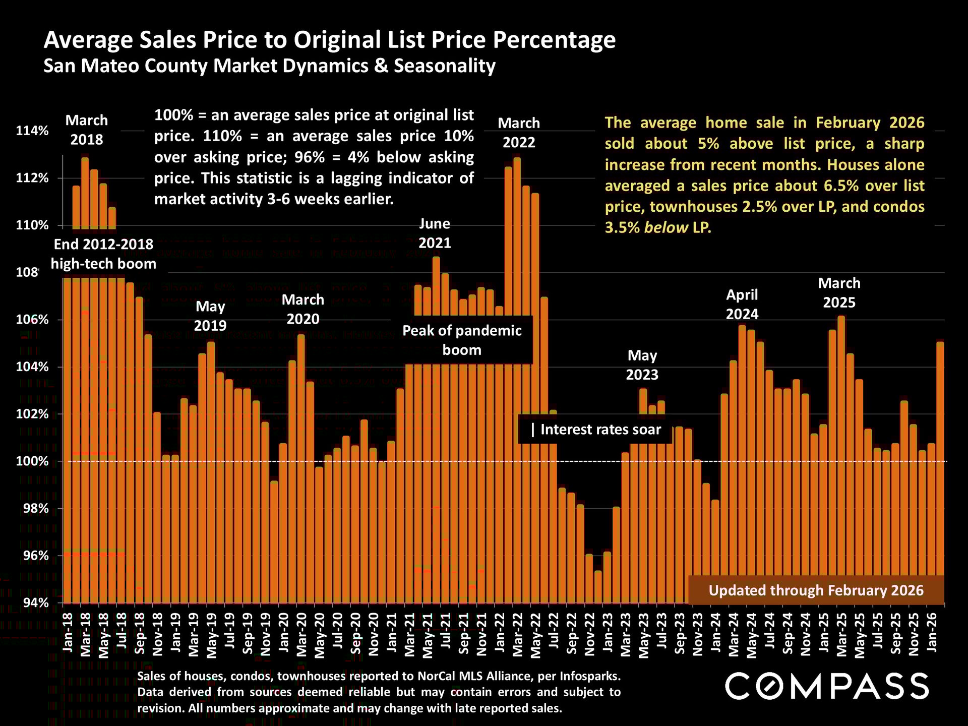 The Average Sales Price to Original List Price Percentage chart, updated through February 2026, shows a notable jump in market competitiveness.